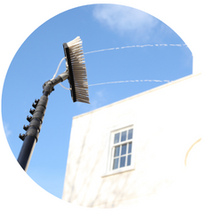 Our equipment allows us to reach a height of 65 feet, without the need for ladders or other access equipment. This allows us to keep our feet on the ground, complying with all aspects of current health & safety legislation.